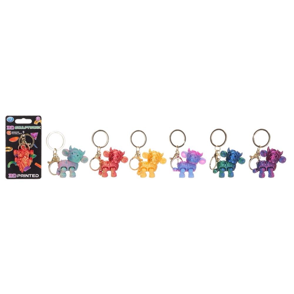 3D PLA PRINTED HIGHLAND COW KEYRING 5CM