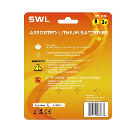 SWL - ASSORTED LITHIUM BATTERIES - 8 PACK